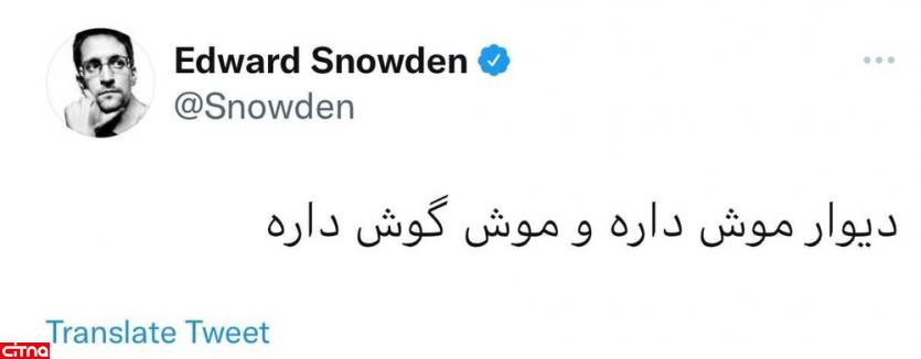 توئیت فارسی اسنودن: دیوار موش داره، موش هم گوش داره!