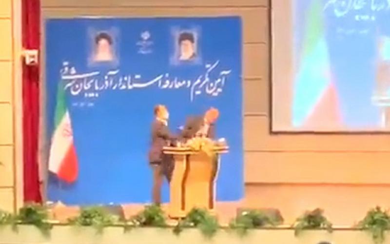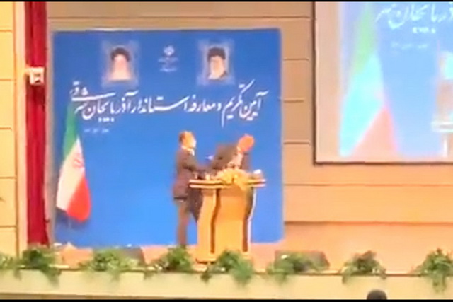صبح امروز آیین معارفه زینالعابدین خرم رضوی استاندار جدید آذربایجان شرقی با حضور وزیر کشور برگزار شد که یکی از شرکت کنندگان با رفتن بر روی سن، به صورت وی سیلی زد.