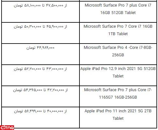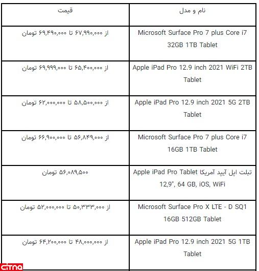 ارزانترین محصول این لیست تبلت اپل آیپد پرو 11 اینچ 2021 سیم کارت خور ظرفیت 2 ترابایت است که با حداقل قیمت 40 میلیون تومان میتوان آن را خریداری کرد.