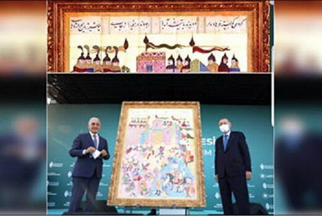 در مراسم رونمایی از تابلوی تاریخی فتح استانبول توسط اردوغان، چیزی که بیش از همه به چشم کاربران توئیتر آمده بود، اشعار پارسی مندرج در حاشیه تابلو بود.