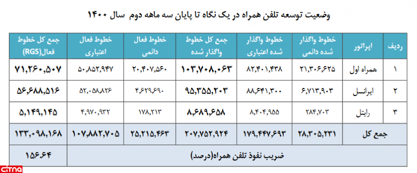 با مقایسه دو جدول بالا میتوان گفت در حالی که طی یک سال گذشته (از پایان شهریورماه 1399 تا پایان شهریورماه 1400) مجموع خطوط فعال اپراتورها 7.839.777 افزایش یافته است، سهم رایتل از این میزان 984.131 خط بوده است و سهم رایتل از 3.32 درصد به 3.86 درصد افزایش یافته است.