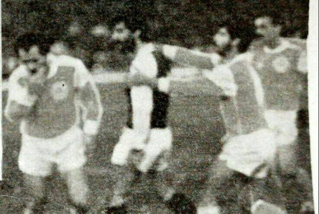 این عکس مشت شاهرخ بیانی بازیکن استقلال را روی صورت ضیا عربشاهی بازیکن پرسپولیس در دربی سال 68 نشان می دهد.
