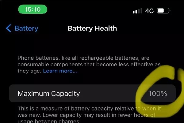 بررسی که پژوهشگر مذکور بر روی باتری گوشی آیفون ۱۳ پرو مکس انجام داده نشان میدهد در شرایطی که بعد از گذشت ۱۰۴ روز میزان سلامت باتری ۹۲ درصد نمایش داده شده، اما عملاً این رقم بر مبنای میزان استفاده از گوشی، سرعت خالی شدن باتری و تعداد دفعات روشن شدن و نیز وضعیت ظاهر و وضعیت شیمیایی باتری در حد ۸۰ درصد است.