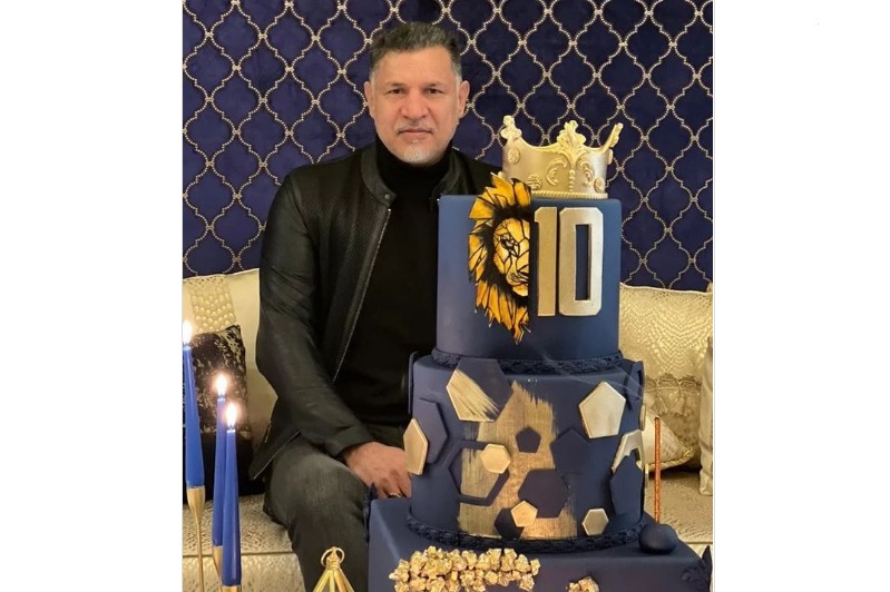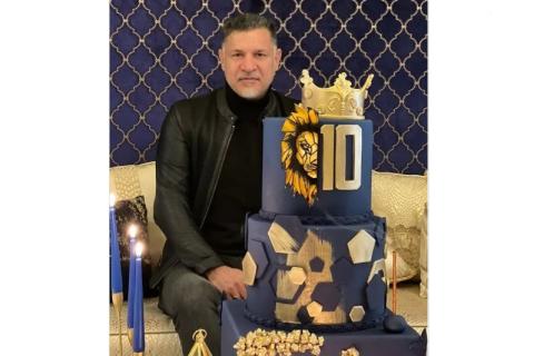 رنگ آبی طلایی و تاج کیک تولد سه طبقه علی دایی برای هوادارانش سوال برانگیز شد.