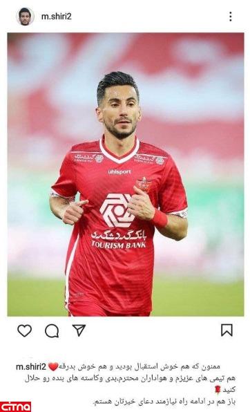 شیری با انتشار پستی در اینستاگرام از هواداران پرسپولیس خداحافظی کرد.