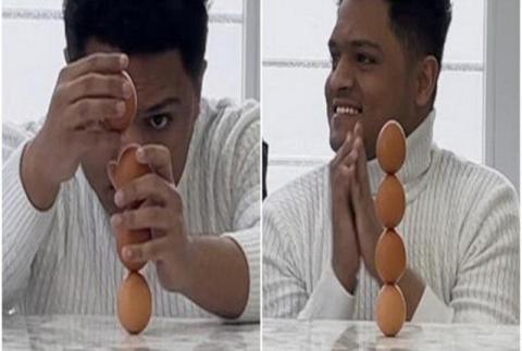 یک مرد یمنی رکورد جهانی خود را در گینس شکست؛ او توانست چهار تخممرغ را بدون واژگونی روی یکدیگر بچیند!