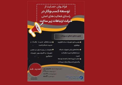 تمدید فراخوان ثبتنام جهت استفاده از تسهیلات وام وجوه اداره شده شرکت ارتباطات زیرساخت