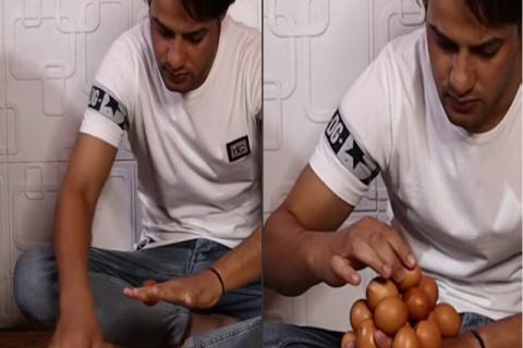 مرد عراقی رکورد حفظ تعادل ۱۸ تخم مرغ با یک دست را از آن خود کرد