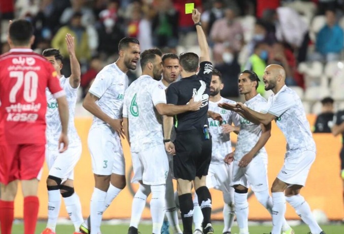 دقیقه ۴: محمود قائدرحمتی به دلیل اعتراض به داور مسابقه با کارت زرد جریمه شد.