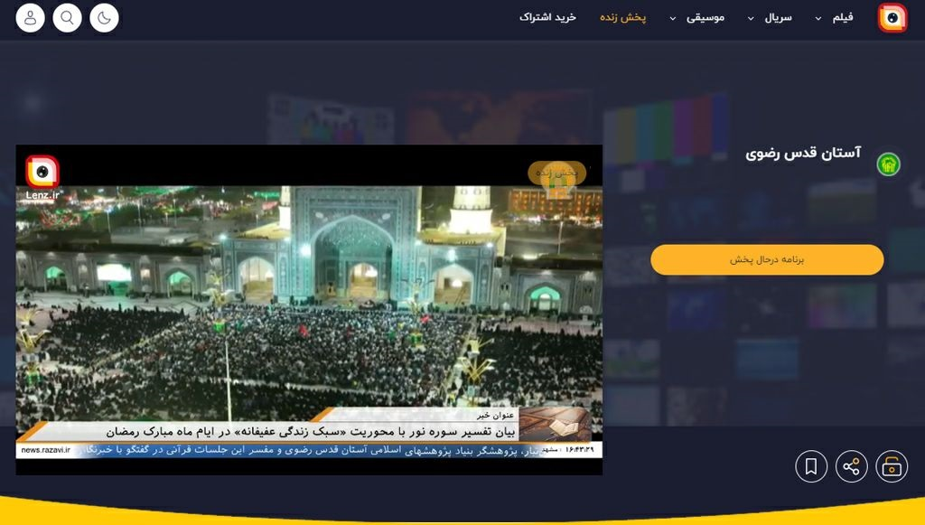 به گزارش سیتنا به نقل از روابط عمومی ایرانسل، لنز، اپلیکیشن تلویزیون اینترنتی اولین و بزرگترین اپراتور دیجیتال ایران، با همکاری آستان قدس رضوی، ویژهبرنامۀ حرم مطهر حضرت علی بن موسی الرضا (ع) برای احیای شبهای قدر را در قالب یک شبکۀ ویژه و به صورت زنده و مستقیم از بارگاه ملکوتی آن امام همام، پخش میکند.