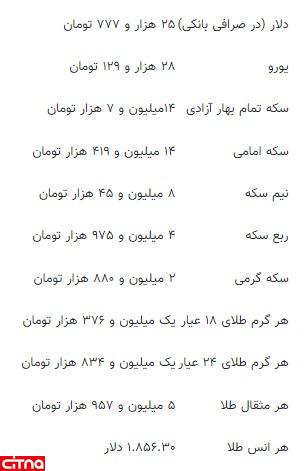قیمت طلا، سکه و ارز ۱۴۰۱.۰۳.۰۲