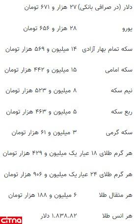 قیمت طلا، سکه و ارز ۱۴۰۱.۰۳.۳۱