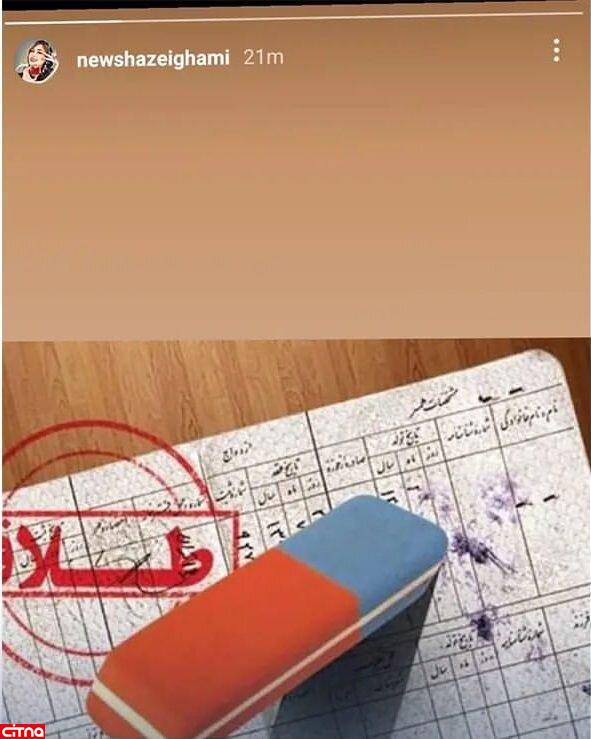 نیوشا ضیغمی عکسی از شناسنامهای که مهر طلاق دارد را منتشر کرد. او استوری خود را بعد از ساعاتی حذف کرد که همین موضوع سبب دوگانی درباره خبرهای جدایی نیوشا ضیغمی از همسرش شده است.