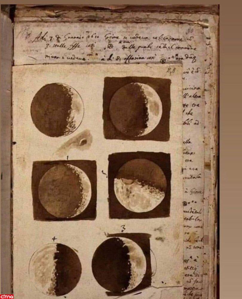 این دانشمند ایتالیایی در همان زمان تصاویری از ماه را اتود زده که برای نخستین بار چاله ها و کوه های پر از پستی و بلندی روی سطح ماه را به تصویر کشیده است. تصاویری که شباهتی زیاد دارند به تصاویری که در صده های بعدی و با لنزهای پر قدرت تلسکوپ های فضایی ثبت شده اند.