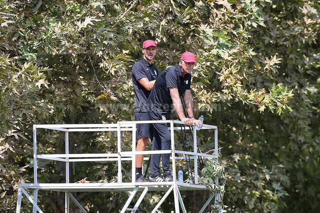 کارلوس کی روش روی سکوهای دیده بانی تیم ملی. کمتر چنین تصویری از کارلوس کی روش در کمپ تیم های ملی به ثبت رسیده بود.