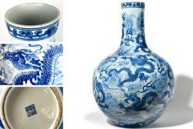 این در حالی است که مسئولان حراجی "Osenat" گلدان چینی آبی و سفید که منقش به طرحهایی از ابر و اژدها است را به عنوان یک کالای معمولی که متعلق به قرن بیستم است، معرفی کردهاند.