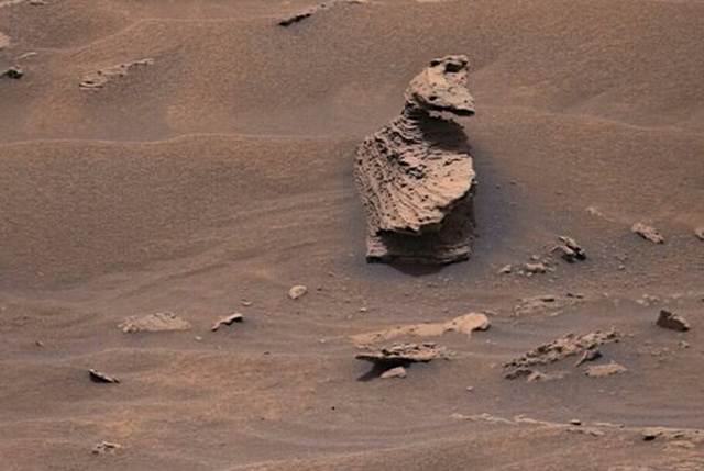 مریخنورد ناسا توانسته تصویر این سنگ را در بهترین زاویه ثبت کند تا به نظر برسد که یک اردک در حال شنا میخواهد به سمت عقب نگاه کند. این سنگ حتی منقار و پاهای این ارک را هم شامل میشود و با توجه به سایهای که روی سر آن ایجاد شده، میتوان جایگاه چشمان این حیوان را متصور شد.