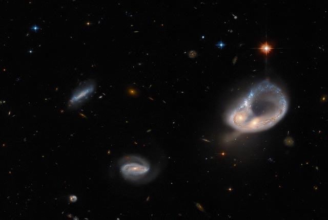 تصویر جدید تلسکوپ هابل شامل برخورد دو کهکشان در فاصله چند صد میلیون سال نوری زمین است که یک حلقه را به‌وجود آورده‌اند.