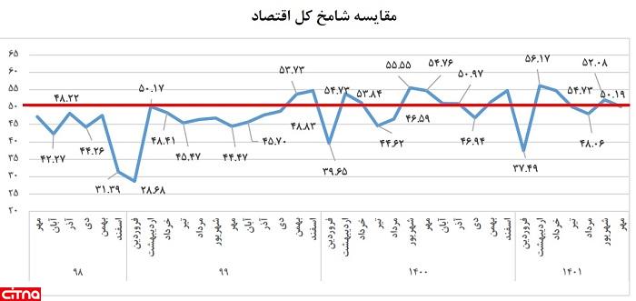بر اساس گزارش مرکز پژوهشهای اتاق ایران، شامخ (شاخص مدیران خرید) مهرماه به 50.19 واحد (مرز رونق و رکود) رسیده است که فعالان اقتصادی، کاهش فروش در اثر افت قدرت خرید متقاضیان، ناآرامیها و قطعی اینترنت را عامل این وضعیت میدانند.