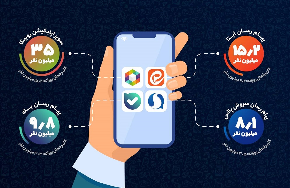 کاربر فعال روزانه روبیکا 15.2، ایتا 9.2، بله 3.3 و سروش پلاس 3.5 میلیون کاربر