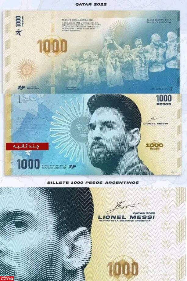 حالا اتفاق جالب دیگری افتاده است. دولت آرژانتین از چاپ اسکناس با طرح لیونل مسی و تیم ملی آرژانتین رونمای کرده است. روی این اسکناس به غیر از تصویر مسی نام او هم نوشته شده است.
