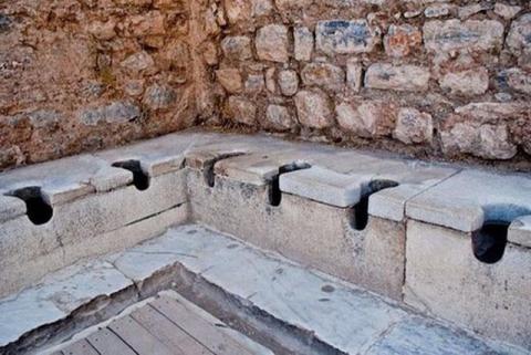 این ایدهای بود که بعدها توسط رومیان نیز مورد استفاده قرار گرفت و توالتهای رومیان شباهت زیادی به توالتهای یونانیها داشت. این توالتها ردیفی از صندلیهای نیمکتی با سوراخهایی بودند که در بالای مجرای فاضلاب قرار داشتند. کریستوف لوتی، برنامهریز زیرساختهای بهداشتی در موسسه فدرال علوم و فناوری آبزیان سوئیس، دراین رابطه گفته:« آنها یک نوآوری پیچیده داشتند که برپایه لولهکشی متمرکز بود.»