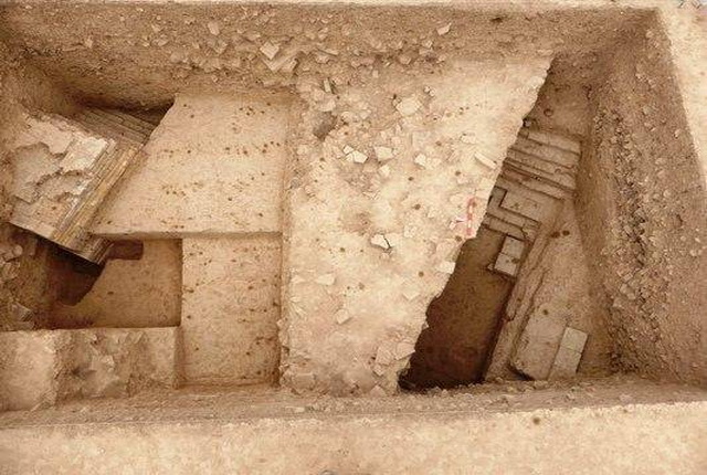 او عنوان کرد: همچنین، بخشی از سازۀ معماری مرحلۀ دوم استقراری شامل یک فوانداسیون متشکل از پارهآجرهای شکسته نمایان شد که در بخش کریدور شمالی قرار داشت.