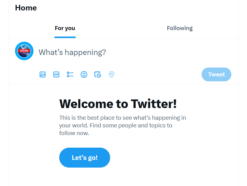 در همین حال با ورود با توییتر، در تبهای For You و Following بهجای توییتها، با پیام خوشامدگویی توییتر روبهرو میشوید.
