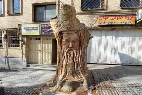 تبدیل بقایای چنار ۳۵۰ ساله به مجسمه مولانا