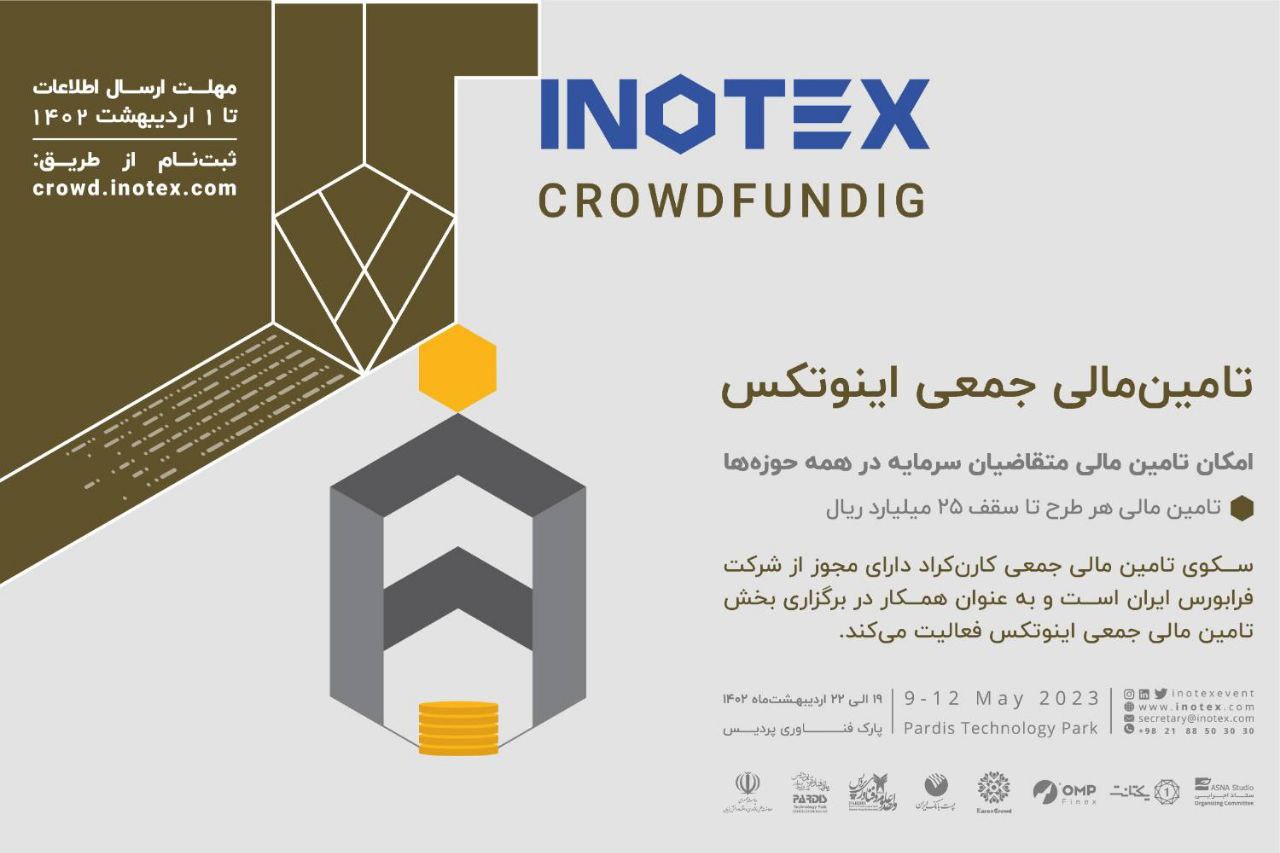 نمایشگاه اینوتکس 2023 امسال شاهد برگزاری رویداد تامین مالی جمعی است؛ این رویداد یکی از رویکردهای نوین در حوزه سرمایهگذاری برای تامین مالی جمعی با مشارکت در درآمد و سهام می باشد.