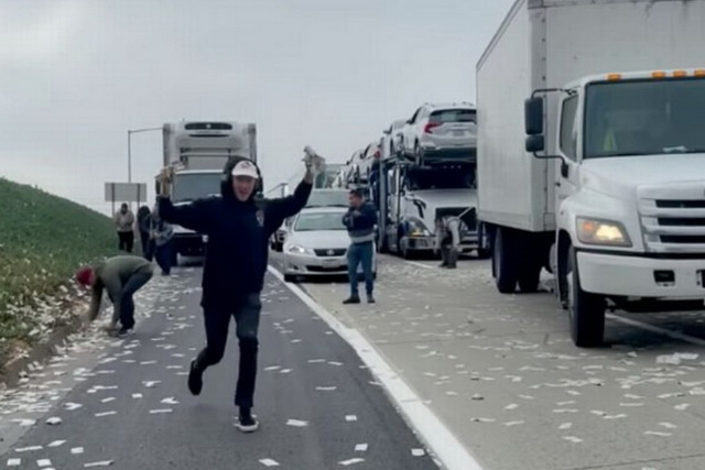 به گزارش سیتنا، مردی از اورگان، پول نقد هنگفتی از خودروی خود به درون بزرگراهی پرتاب کرد و باعث شد مردم برای جمع کردن این پول نقد در این بزرگراه توقف کنند.