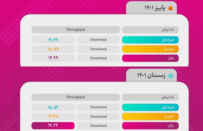 رگولاتوری وضعیت ارتباطات در زمستان ۱۴۰۱ را اعلام کرد: اینترنت رایتل در جایگاه بالاترین سرعت دانلود