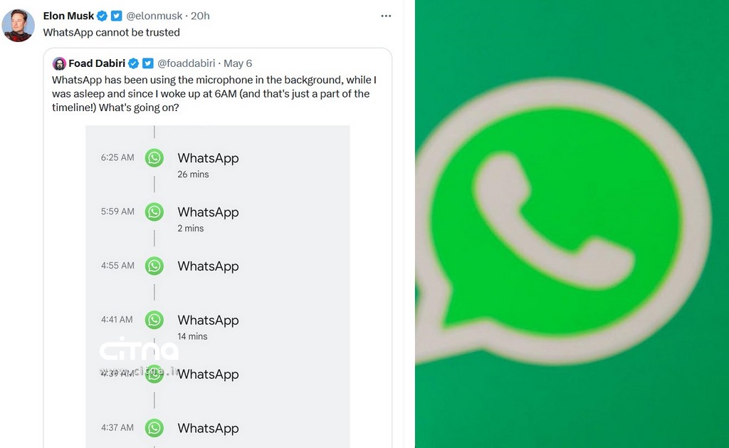 ایلان ماسک با نقل توئیت یک کاربر که به استفاده واتس اپ از میکروفن گوشیاش در زمان خواب شبانه اشاره کرده، تاکید کرد که «واتس آپ قابل اعتماد نیست».