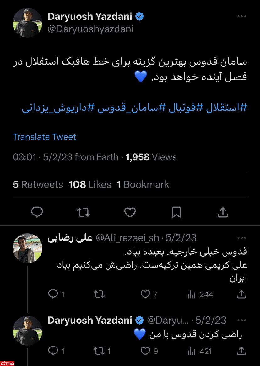 توییت پیشکسوت آبیها؛ سامان قدوس استقلالی میشود!