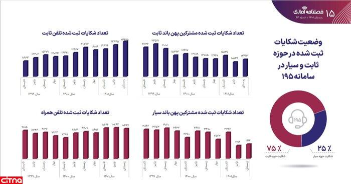 بر اساس گزارش رگولاتوری، آمار مربوط به ثبت شکایات حوزه ارتباطات در سامانه ۱۹۵ نشان میدهد که شکایات در حوزه تلفن ثابت و سیار افزایشی و شکایات حوزه اینترنت ثابت و سیار در پاییز ۱۴۰۱ روند کاهشی داشته است.