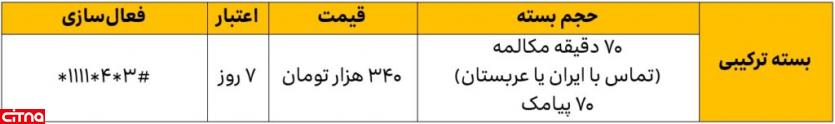 ایرانسل همچنین بسته ترکیبی مکالمه و پیامک برای مشترکانی که در سفر به سرزمین وحی نیاز به استفاده بیشتر از مکالمه و پیامک را دارند، درنظر گرفته است که شامل ۷۰ دقیقه مکالمه با ایران یا عربستان و ۷۰ پیامک، با اعتبار ۷ روز و با قیمت ۳۴۰ هزار تومان است.