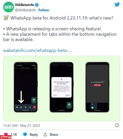 اشتراک‌گذاری صفحه نمایش؛ قابلیت جدید واتس‌اپ