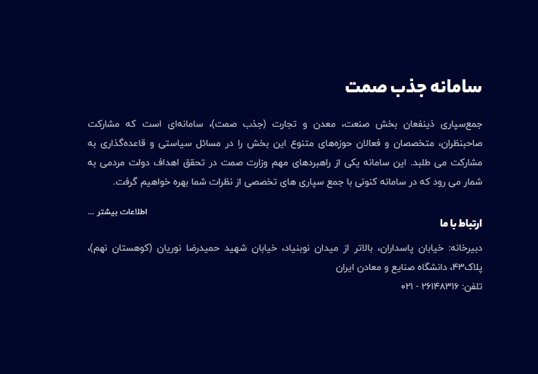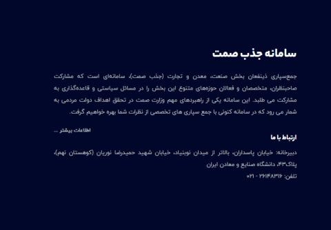 یادآور می شود، سامانه جذب صمت به نشانی jazb.mimt.gov.ir اواخر فروردینماه سالجاری، در مراسمی با حضور «سیدرضا فاطمیامین» وزیر پیشین صنعت، معدن و تجارت، تشکلهای بخش خصوصی و نمایندگانی از دانشگاهها و اندیشکدهها بهصورت رونمایی شد و در دسترس عموم قرار گرفت.
