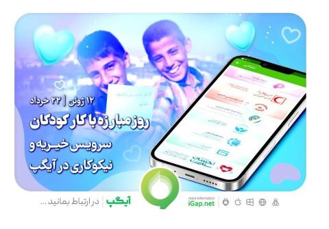 در روز جهانی مبارزه با کار کودکان، کاربران آیگپ میتوانند با مشارکت در امور خیریه و نیکوکاری در رساندن کودکان نیازمند به رویاهایشان پیشقدم شوند و برای این کار کافی است که در آیلند بر روی نشان "خیریه و نیکوکاری" کلیک کرده و با انتخاب موسسه و نهاد نیکوکاری که مدنظر دارند، مبلغ دلخواه خود را از طریق آن موسسه به دست کودکان نیازمند برسانند.