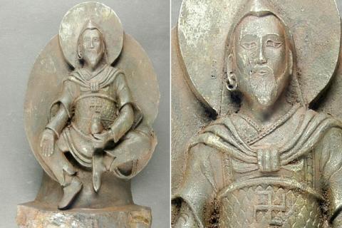 عکس مجسمه بودا از جنس شهاب سنگ و با نشان آریایی