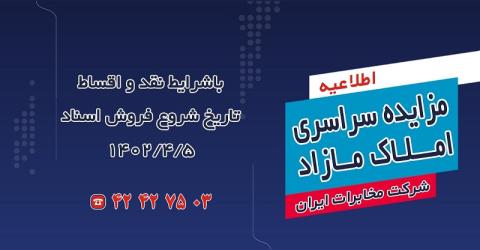 شرکت مدیریت سامان سازه غدیر به نمایندگی از شرکت مخابرات ایران در نظر دارد نسبت به فروش تعدادی از املاک مازاد مخابرات در قالب مزایده سراسری الف-۱۴۰۲ اقدام کند.