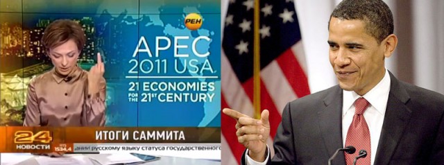 «تاتیانا لیمانوا» Tatiana Limanova مجری زن تلویزیون رسمی روسیه هنگام خواندن اخبار، وقتی به نام «باراک اوباما» رئیس جمهور ایالات متحده آمریکا رسید، با دست خود حرکتی ناشایست و غیر اخلاقی نشان داد.