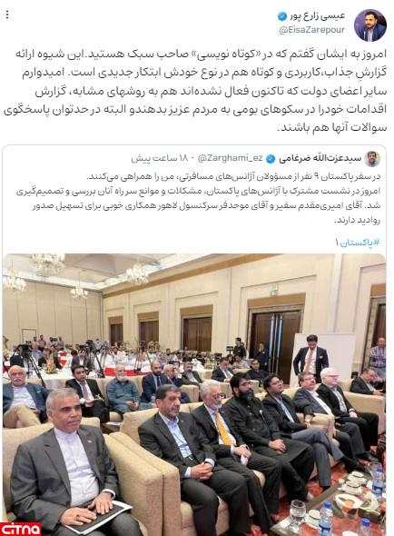 به گزارش سرویس وبگردی سیتنا، عیسی زارع پور در ویراستی خود با اشاره به نوع نوشتار عزت الله ضرغامی وزیر میراث فرهنگی، گردشگری و صنایع دستی، نوشت: