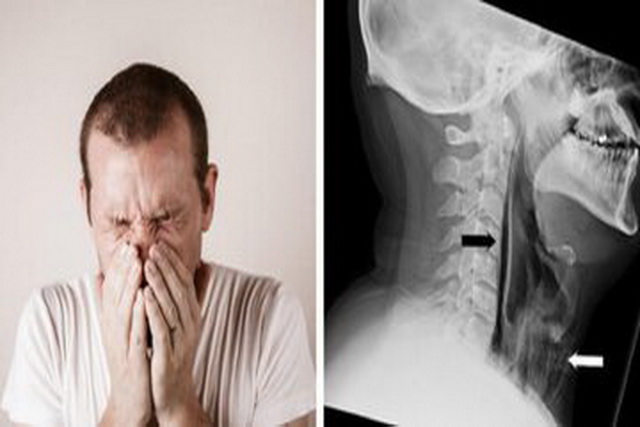 او گفت، «برای اینکه جلوی عطسه شدید خود را بگیرم، بینیام را محکم گرفته و دهانم را بستم. پس از عطسه، احساس کردم چیزی در گلویم ترکیده است و دو طرف گردنم متورم شد.»