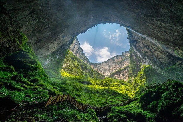 تصویر شگفت انگیز از گودال خارق العاده بهشت در چین!