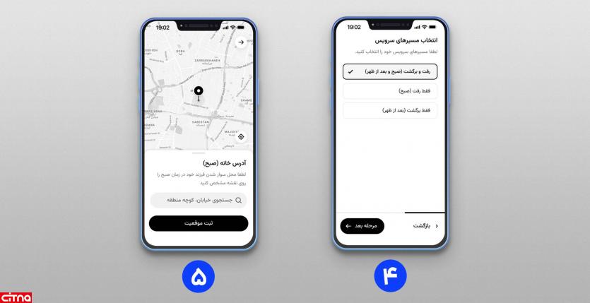 ۵- آدرس خانه یعنی محلی که صبحها دانشآموز سوار سرویس میشود را مشخص کنید و با لمس دکمه ثبت موقعیت به مرحله بعد بروید.