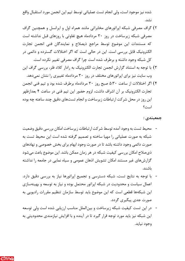 نتایج تست کیفیت شبکه با انجمن تجارت الکترونیک: