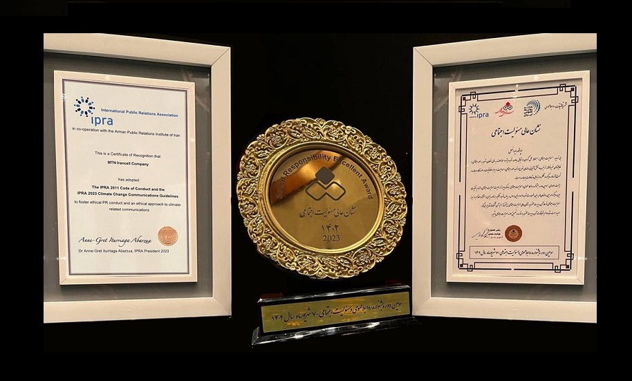ایرانسل، برای سومین سال متوالی، در سومین دوره جشنواره روابط عمومی و مسئولیت اجتماعی، موفق به دریافت نشان عالی مسئولیت اجتماعی و تقدیرنامه انجمن بینالمللی روابط عمومی (IPRA) شد.