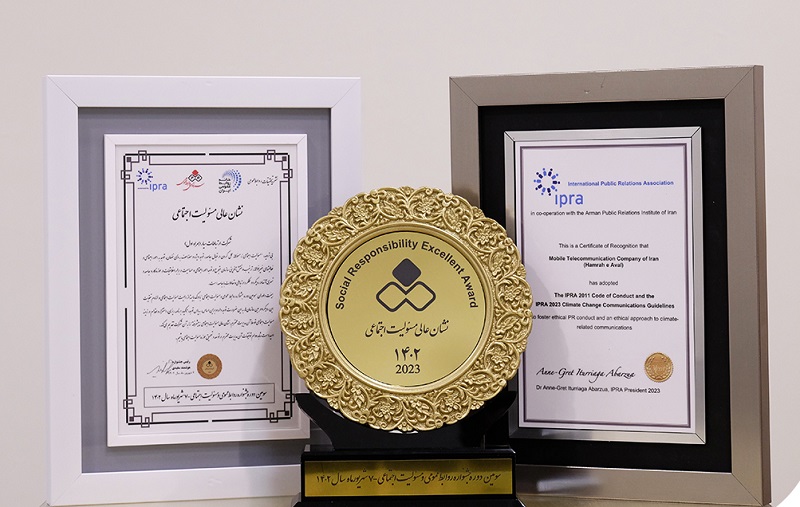 همچنین به پاس رعایت و تعهد به اجرای کدهای اخلاقی و ضوابط مربوط به استفاده از ظرفیت های ارتباطات و روابط عمومی در صیانت از محیط زیست و مقابله با تغییرات آب و هوایی، تقدیرنامه انجمن بین المللی روابط عمومی به همراه اول اعطا شد.