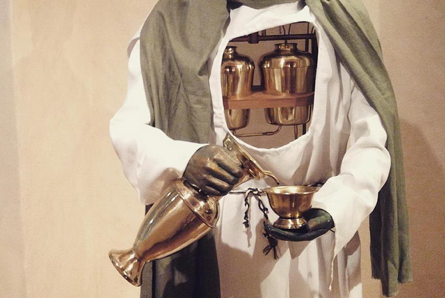 وقتی فنجان پر شد، دستی که فنجان را در دست گرفته بود، به دلیل وزن زیاد، پایینتر میرفت و مجرای هوای آب مسدود و بنابراین ریختن آب متوقف میشد. خدمتکار میتوانست جام مهمان را بسته به اینکه چه زمانی فنجان را از دست او بگیرند، با شربت خالص یا رقیقشده به مقدار دلخواه پر کند.
